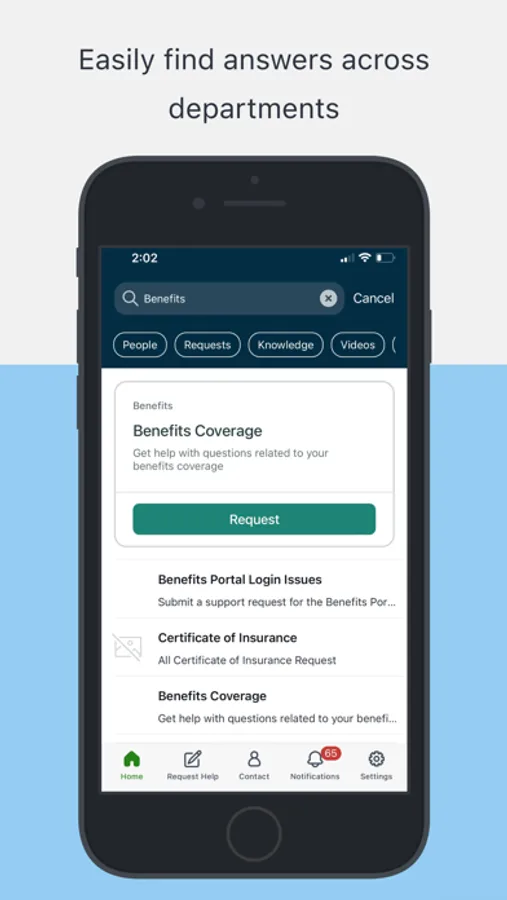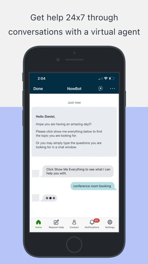 My ServiceNow allows pre-hires, new hires, contractors, and employees to find answers and get stuff done across IT, HR, Facilities, Finance, Legal and other departments, all from a modern mobile app powered by the Now Platform®.