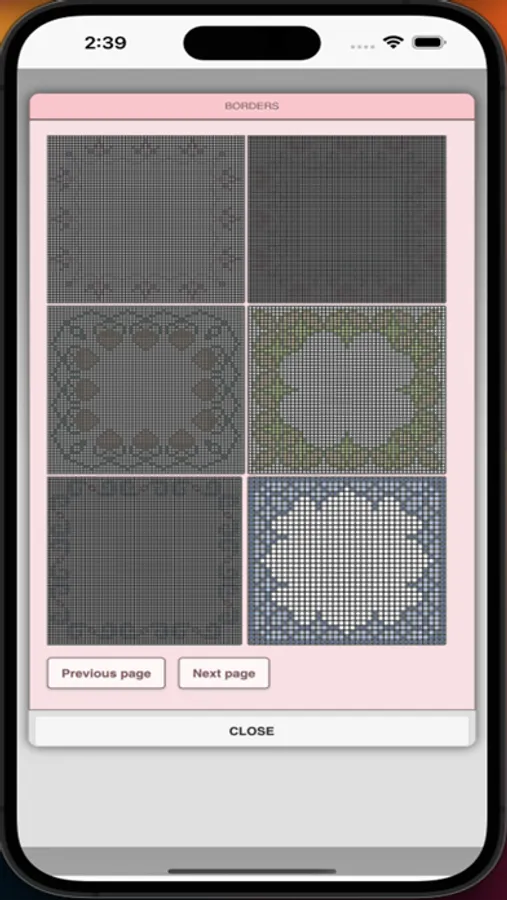 Borders icon - selectable borders to add to your pattern. Borders automatically wrap around your diamond painting pattern.