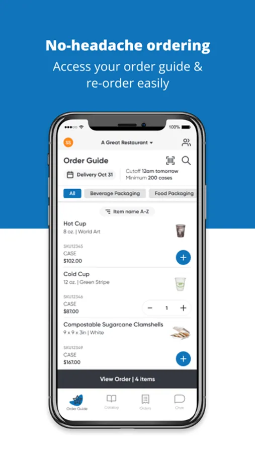 Our mobile app lets you search our complete product catalog, manage and update your ordering guide, and buy what you need at the moment you need it. It’s part of our commitment to giving you an ordering experience you’ll love.