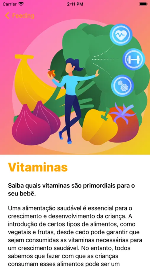 O Feeding é uma boa escolha porque pode auxiliar nos cuidados com o recém-nascido, permitindo que você salve artigos úteis para a criação do seu filho(a), além de oferecer orientações sobre alimentação saudável até os 2 anos da criança e amamentação em geral, incluindo a pega correta e o aleitamento materno ou fórmula.