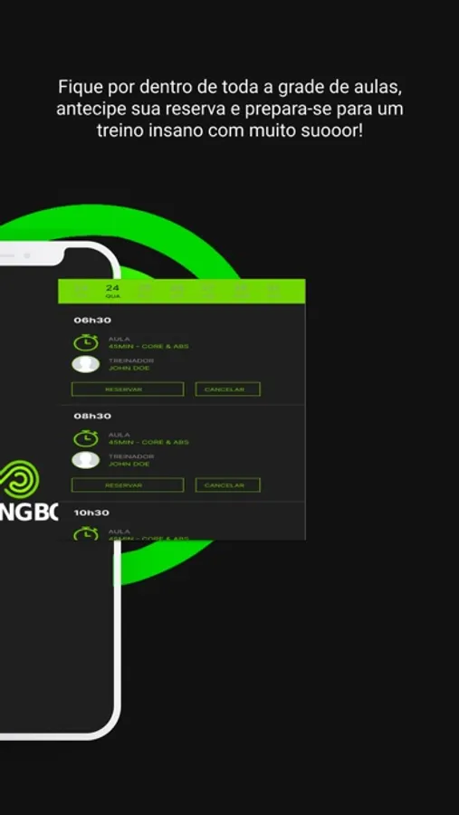 Com poucos cliques, você reserva seus treinos, navega em nossa grade de aulas, compra seus créditos, gerencia seu perfil, conhece seus coaches e muito mais.