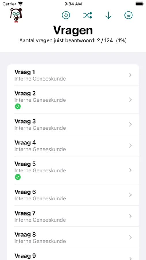 - Sorteer vragen op of je ze al gemaakt hebt