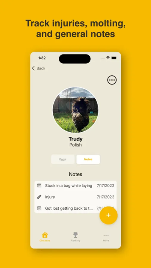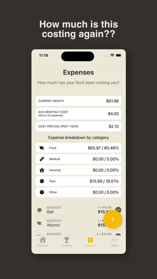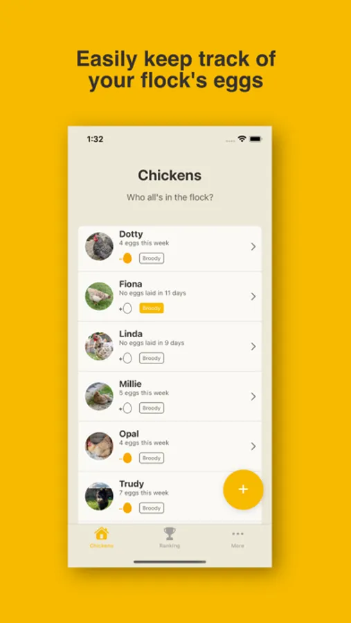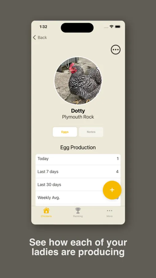Gone are the days of counting your chickens' eggs manually and keeping track of them on paper. With POS Chickens, you can easily monitor and manage your chickens' egg production with just a few taps on your phone! What's more, keep track of who's being broody, when an injury happens, expenses, or whatever else you'd like.