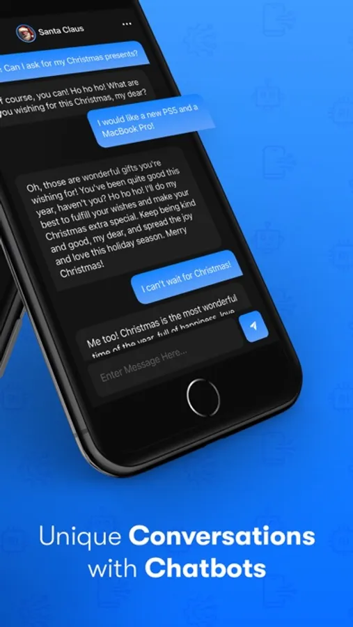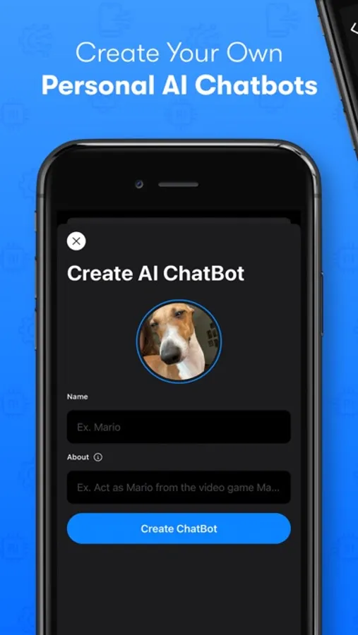 Want to get started right away? Start chatting with one of our premade AI chatbots as soon as you download the app. Our custom-made system makes chatting simple, easy, and fun!