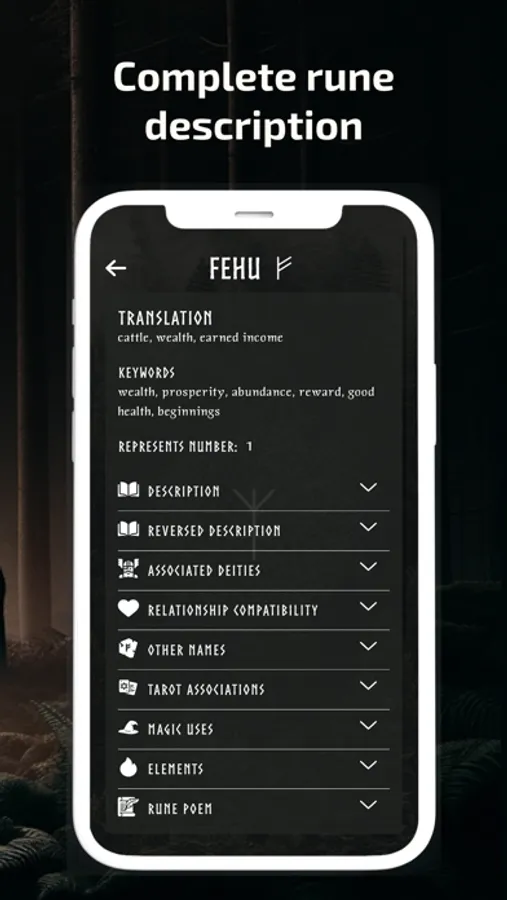 * Complete Rune Dictionary: Understand the upright and reversed meanings of each rune.