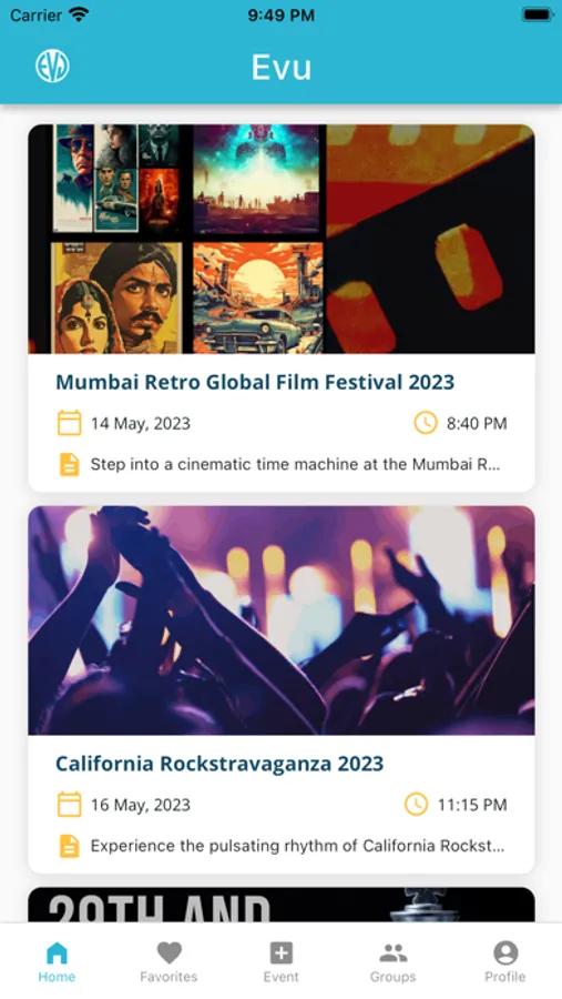Discover Events: Explore local events, ranging from concerts and festivals to workshops and conferences. Evu is your passport to what’s happening near you.