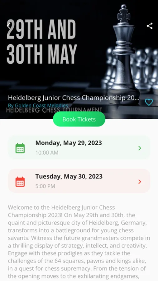 Book Tickets: Found an event you're interested in? Book your spot instantly within the app. With our integrated booking system, you're just a few taps away from securing your place at your next memorable experience.
