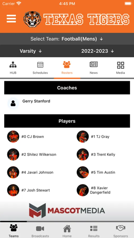 -Supporters: Special Thanks to local boosters and supporters of Texas Tiger Athletics with a directory including website and in-app calling.