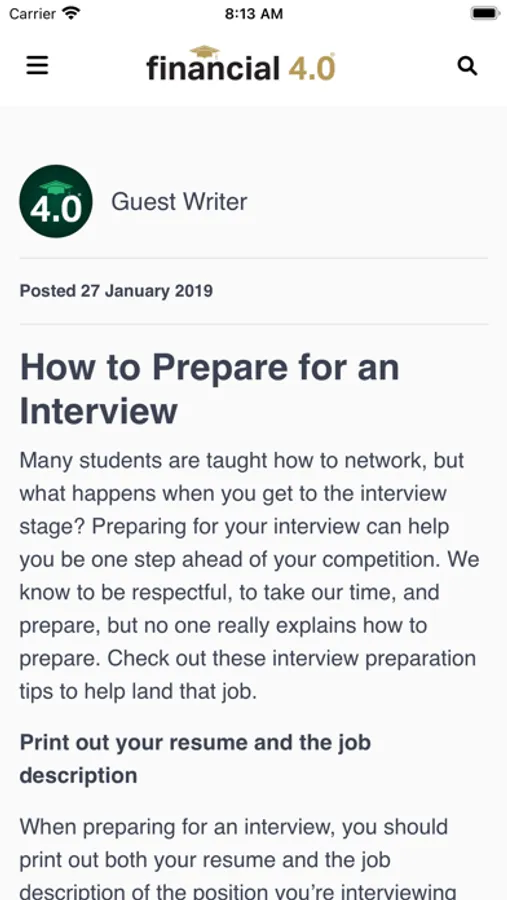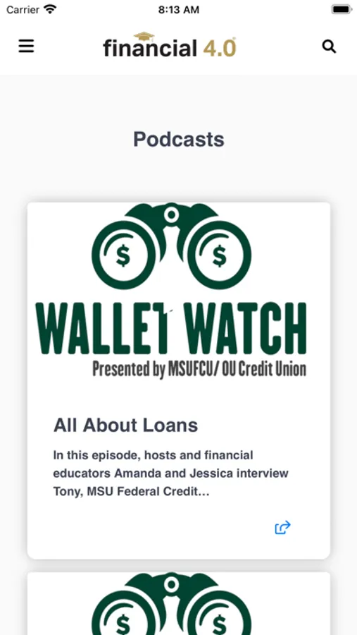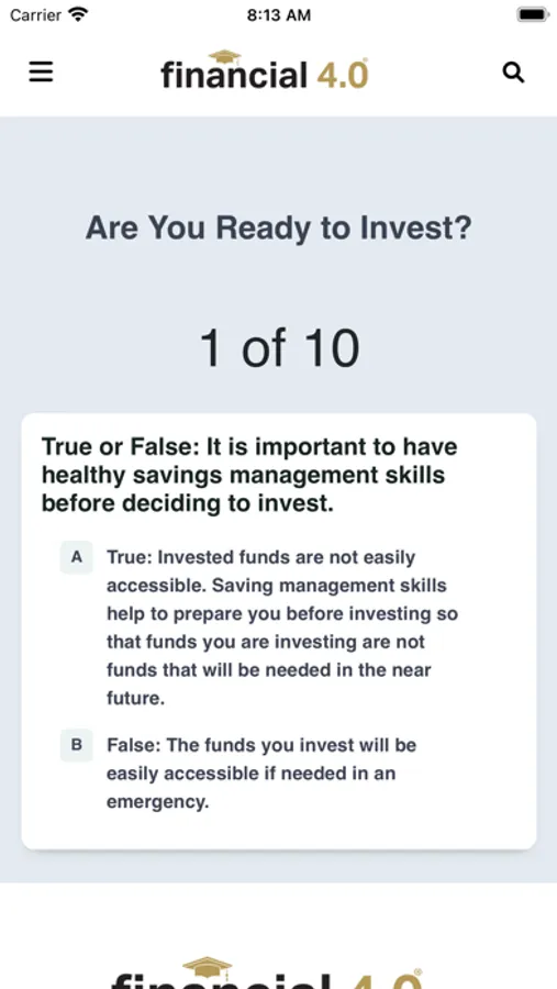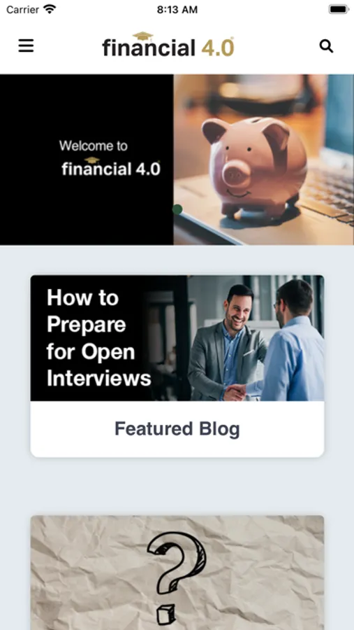 Financial 4.0 is a free financial resource designed to help college students discover how to build and secure their financial future. Download the app to learn financial tips to build good credit, budget wisely, protect your money from fraud and scams, have basic investment knowledge, and more.
