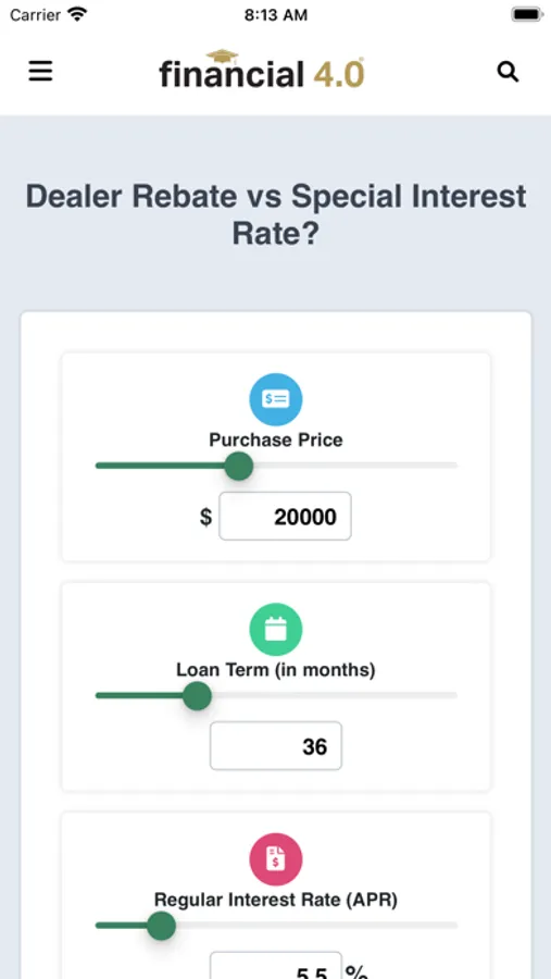• Financial calculators to help you answer a variety of financial questions, such as how much interest you will save on a loan, or how long it will take you to pay off your credit card