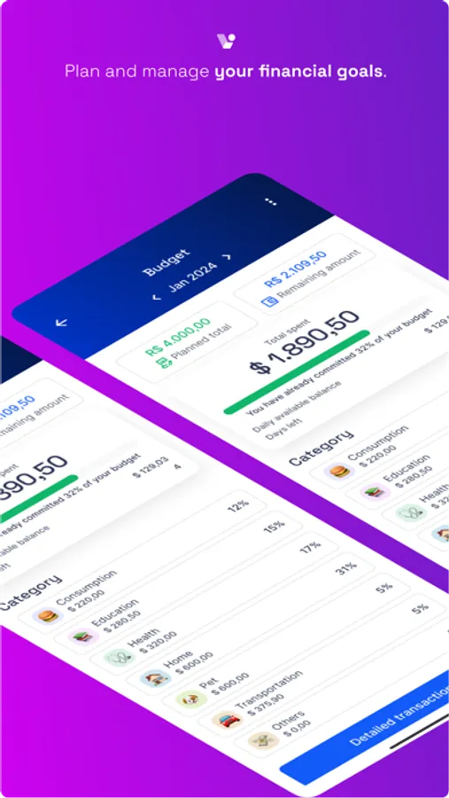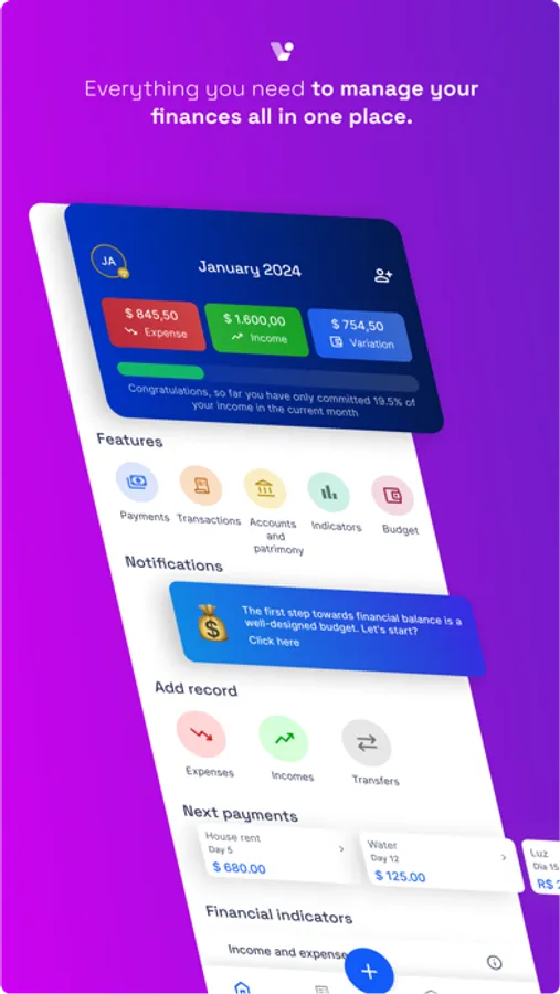 We know that creating the habit of managing your finances can be a challenge, especially if you use spreadsheets and manual notes to control your expenses. But that's exactly why we developed an application that will help you with this task, allowing you to organize and plan your finances more efficiently.