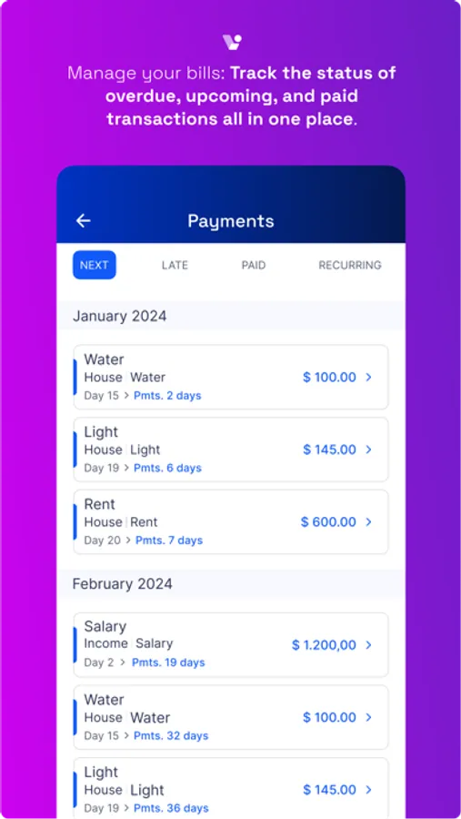- Receive alerts of your bills due