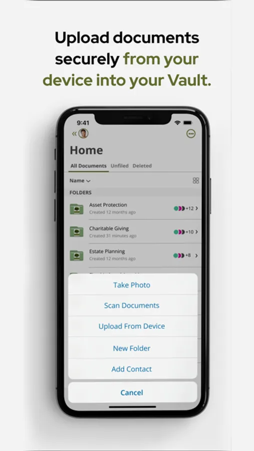 • Securely share your documents with your Trusted Advisors.