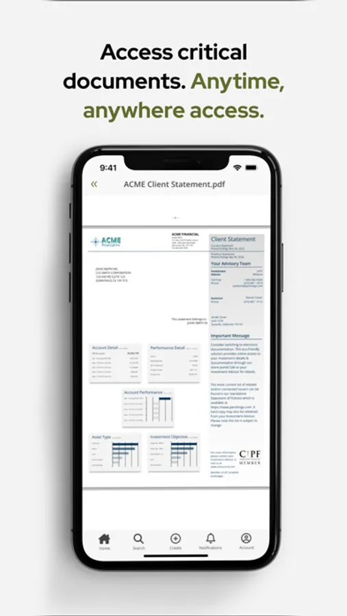 • Access your information and documents on the go, 24/7.