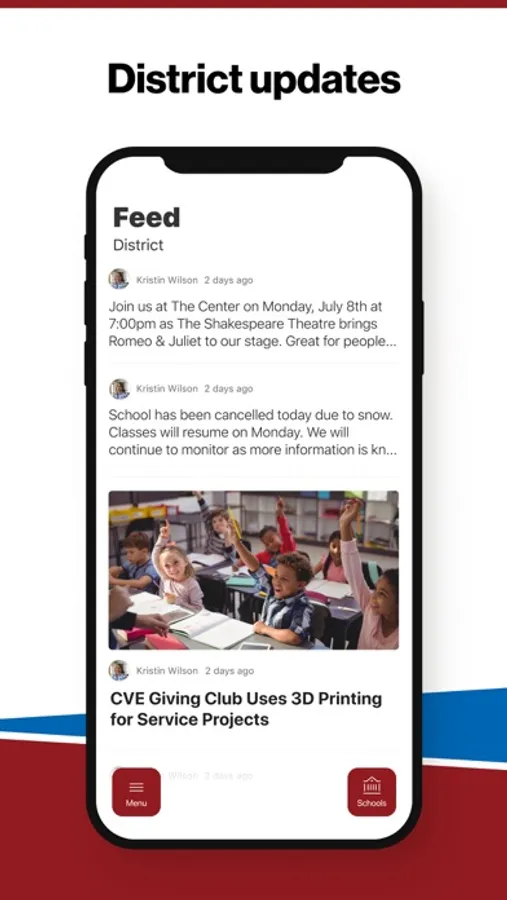 In the Live Feed is where you'll find updates from the administration about what's going on in the district right now. Whether that's celebrating a student's success, or reminding you about an upcoming deadline.