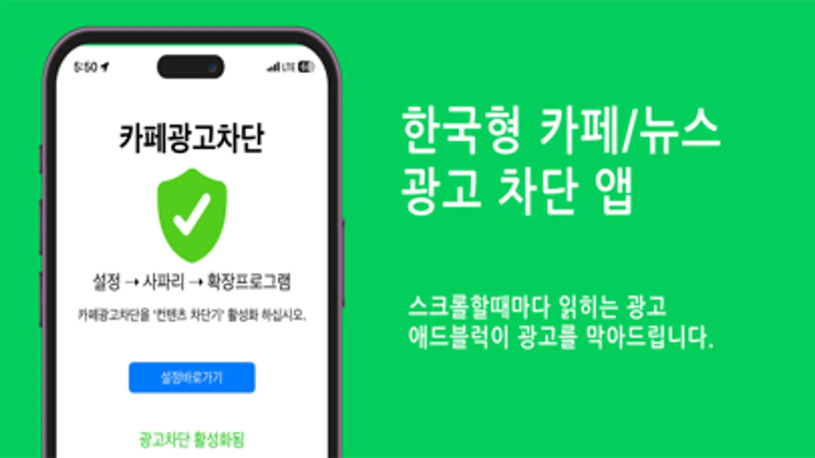 사파리 브라우저에서 특정 광고가 노출되지 않도록 하는 광고차단앱입니다.