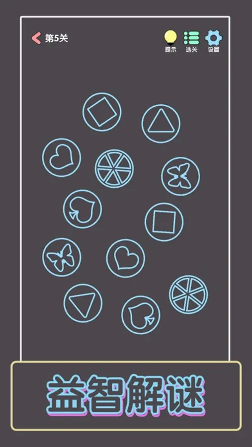 这是一款解开谜题,点亮所有灯光的解谜游戏,游戏的关卡是由许多霓虹灯组成的机关,需要我们寻找线索,解开谜题点亮灯光才能通往下一关,每关都有不一样的玩法,让您感受到与众不同的游戏乐趣,快来挑战一下吧!