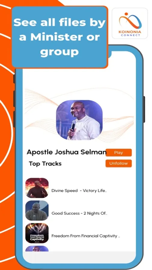 * Convenient: Provides easy and convenient access to messages and music from Apostle Joshua Selman, Koinonia Global, Nigeria, and other selected Ministers/groups.