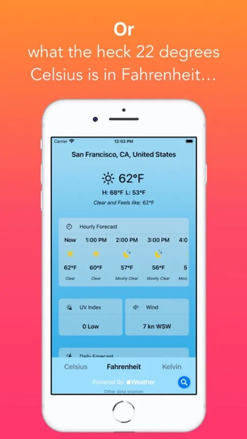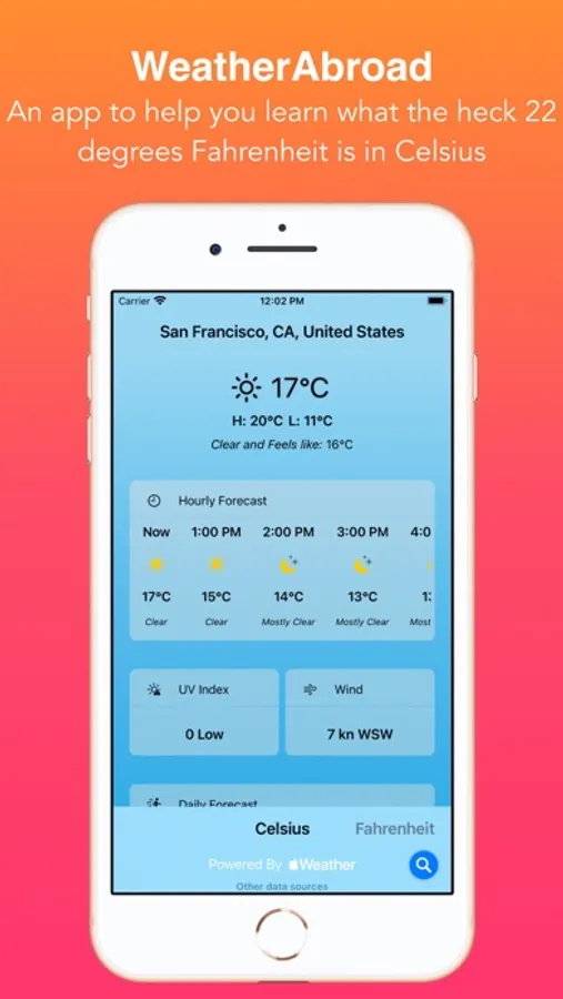 A weather app focused on learning the metric (celsius), imperial (fahrenheit), or even standard (kelvin) systems of measurement!