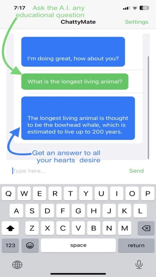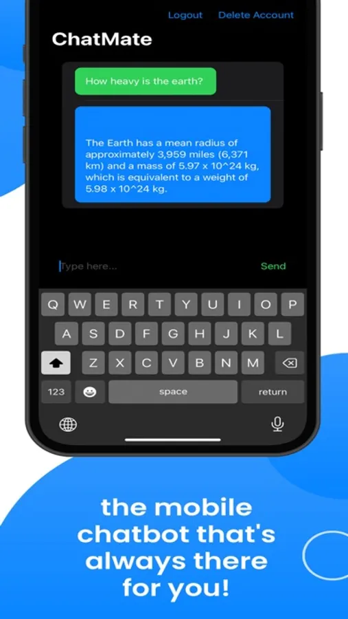 Introducing ChatMate, the mobile app that allows you to carry an AI-powered chatbot in your pocket. ChatMate is built on advanced technology and is trained on a vast amount of data to provide you with accurate and reliable responses to your queries. Whether you need help with homework, want to have a casual conversation or need recommendations, ChatMate is here to assist you. With its user-friendly interface, you can chat with ChatMate anytime and anywhere on your mobile device. Download ChatMate today and experience the power of AI at your fingertips!