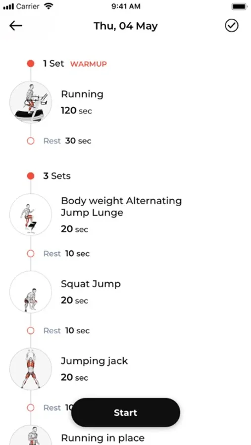 App also uses Apple Health to track energy burned and heart rate during a workout session, if an Apple Watch is used.