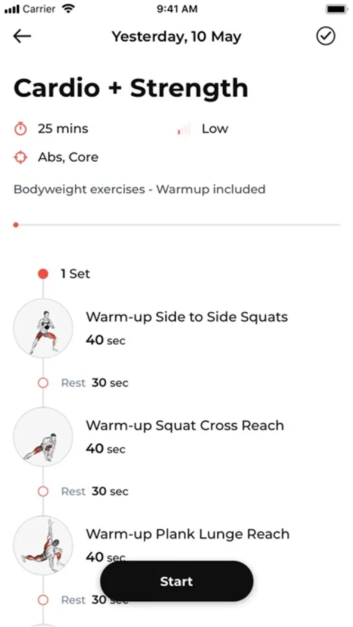 App also uses Apple Health to track energy burned and heart rate during a workout session, if an Apple Watch is used.