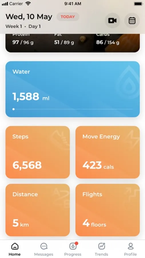 The app integrates with Apple Health to show your daily activity - distance, steps, active energy, and flights to help you better achieve your goals.
