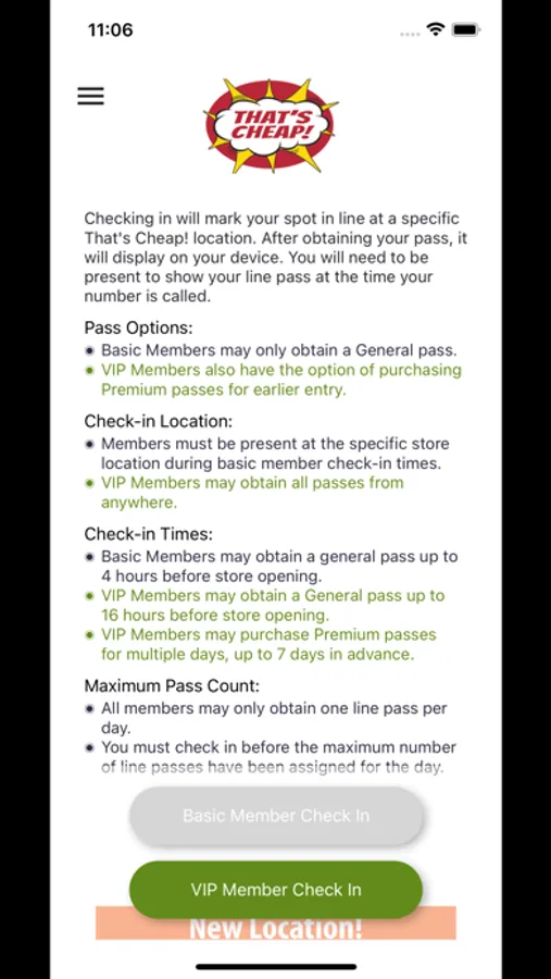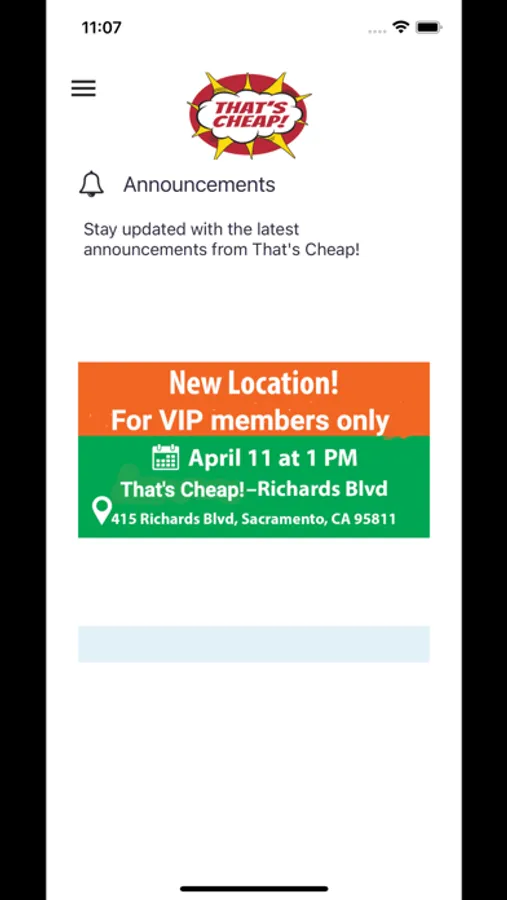 The That's Cheap! app is the way to get priority entrance at opening time for each That's Cheap! location. You can also stay up to date with special announcements and offers.