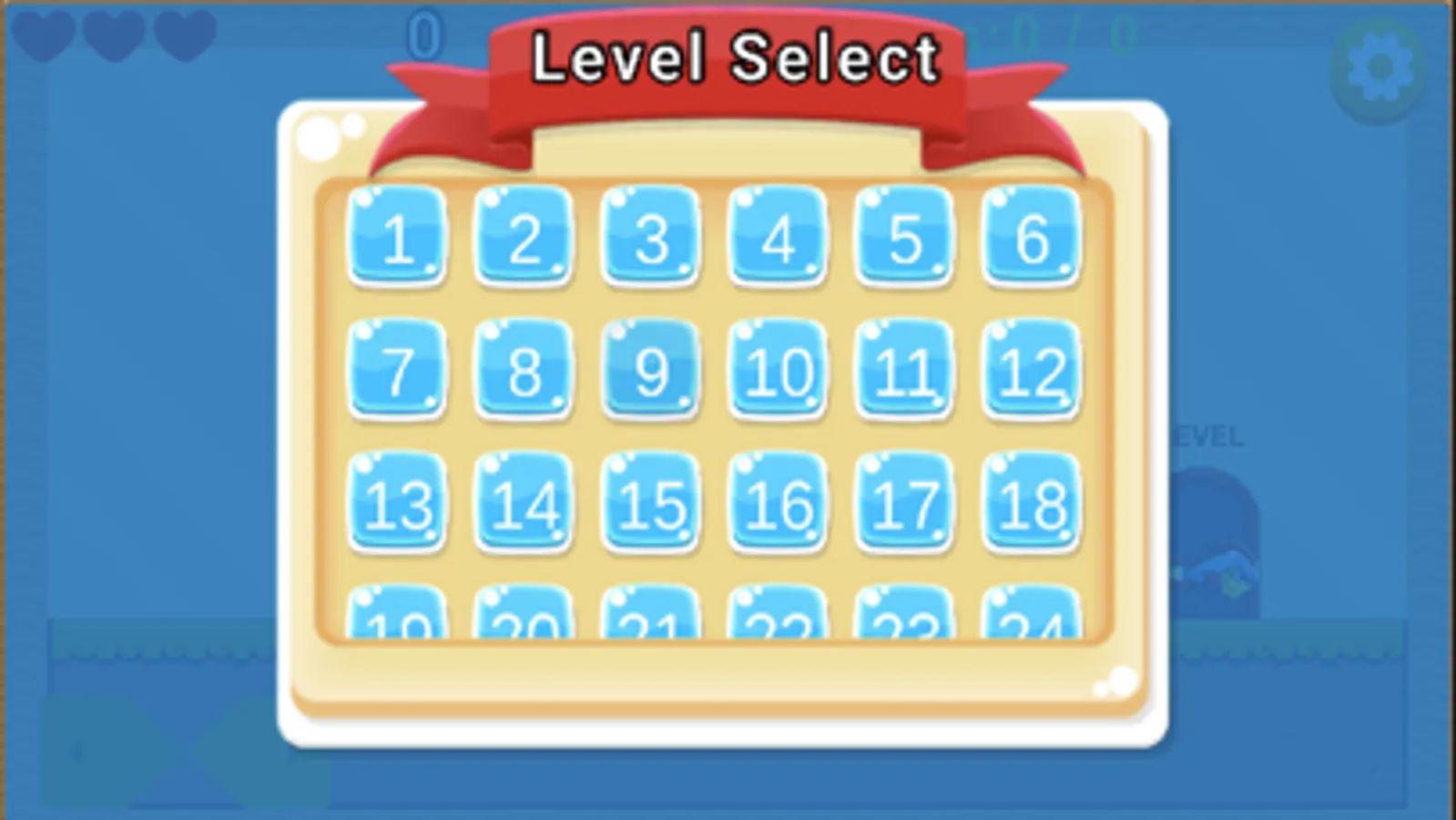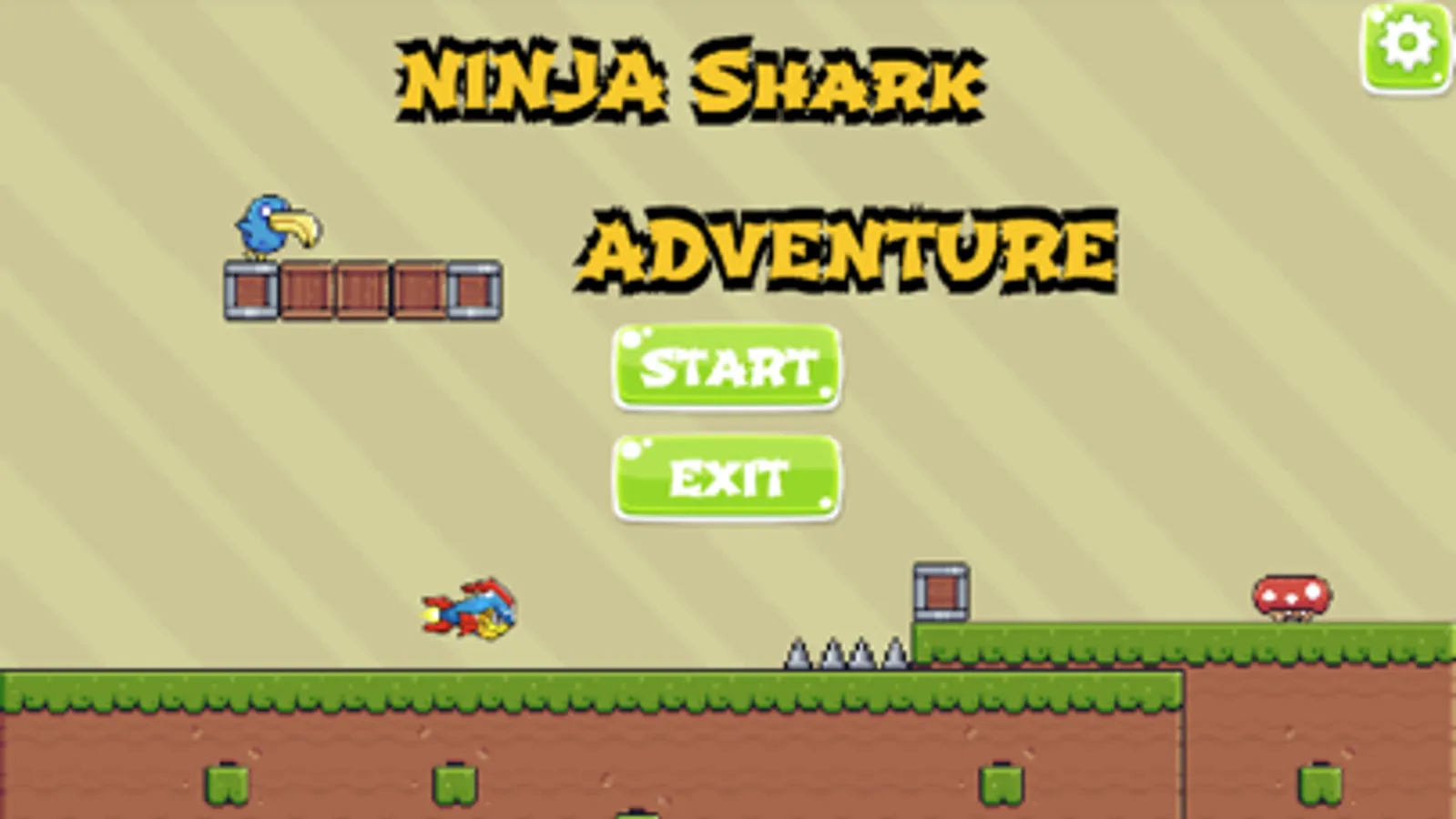 In an alien world, help Ninja Shark pass levels by crushing enemies by jumping over or skipping them to dodge them, collect fruit to unlock locked levels