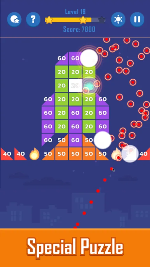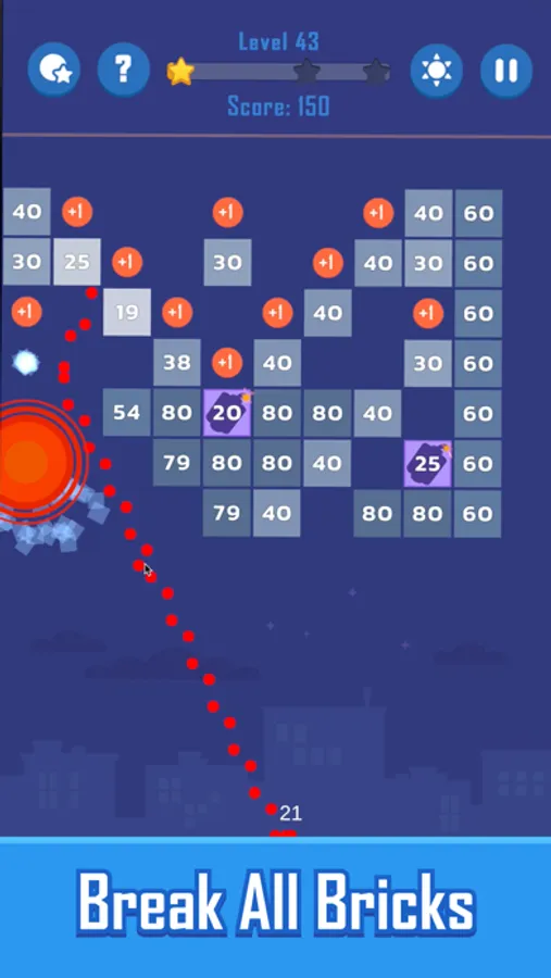 1. Swipe the ball to destroy the bricks.