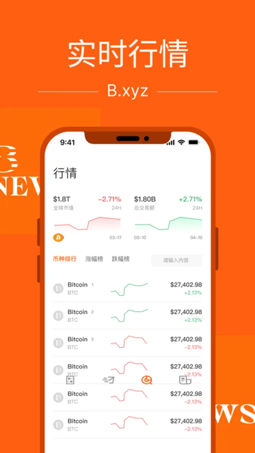 行情功能:用户可以在行情板块中获取实时的金融市场行情信息。我们提供多种资产类别的行情数据,包括股票、加密货币、外汇等。用户可以查看实时价格、涨跌幅、成交量等关键指标,并可以自定义设置关注的市场。