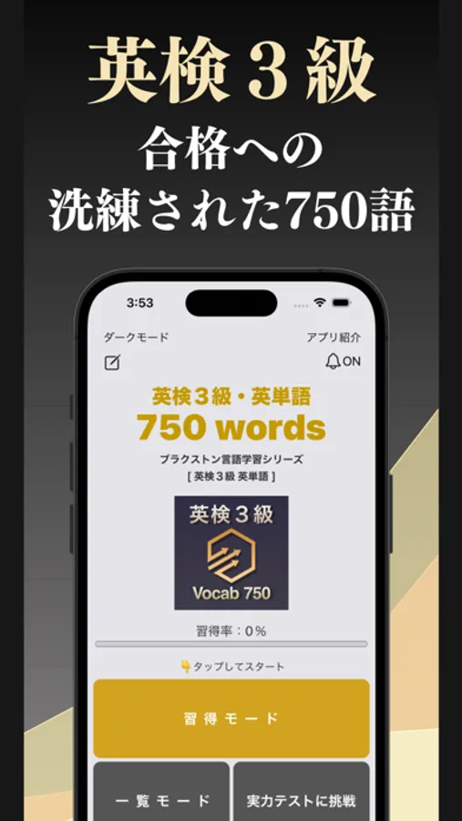 * 英検3級の過去問を徹底的に分析した英単語アプリが登場! 収録語数は750語です。