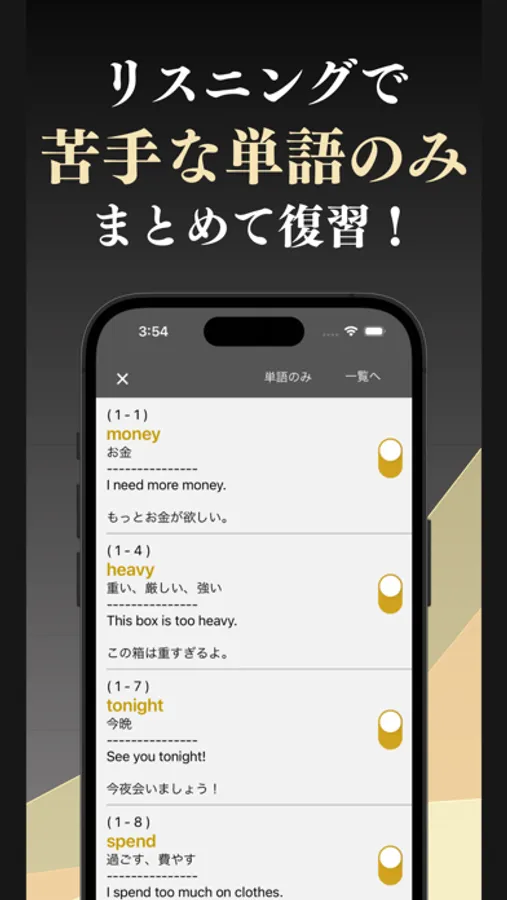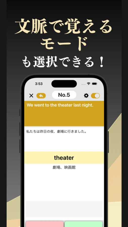 * 文脈で覚えるモードにより、無理のない単語学習ができます。