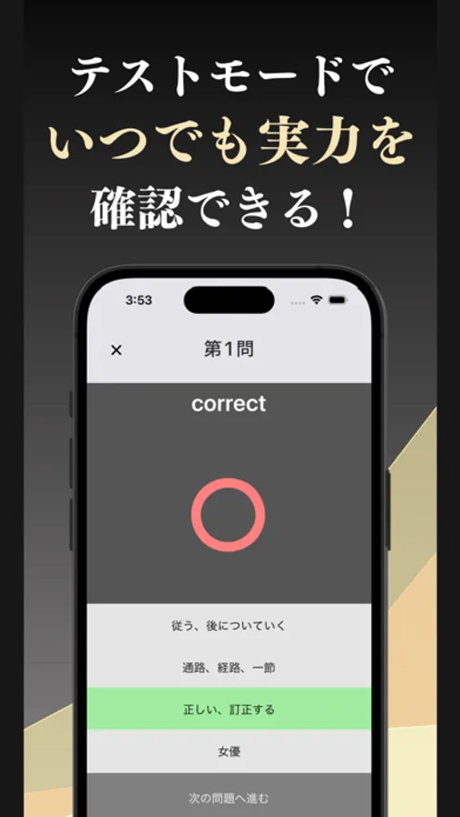 * 4択形式のテストモードでいつでも実力をチェックできます。