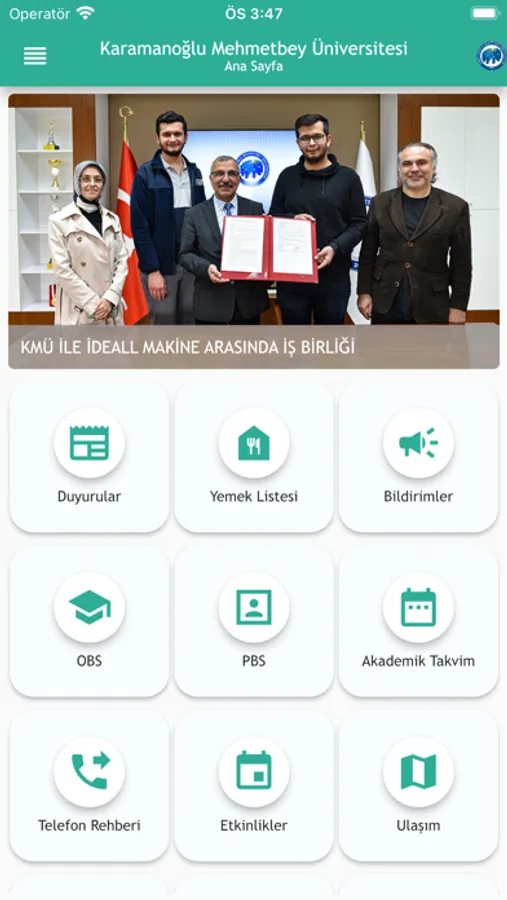 Karamanoğlu Mehmetbey Üniversitesi Bilgi İşlem Daire Başkanlığı tarafından geliştirilen yeni mobil uygulama artık yayında. Yapılan bu yenilemeyle ekran görselleri kullanıcı dostu ve ergonomik hale getirilmiş, uygulamaya farklı tema seçenekleriyle eklenmiştir. OBS ve PBS içerikleri zenginleştirilmiş , üniversitemizin telefon rehberi uygulama içine entegre edilmiştir. Yeni uygulama ile üniversitemizin aylık yemek listesine, etkinliklere ve duyurulara erişim daha kolay hale gelmiştir.