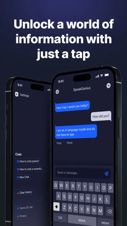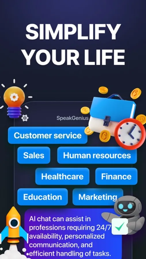 With SpeakGenius, you can communicate with friends, colleagues and family, and receive recommendations and advice from an AI assistant.