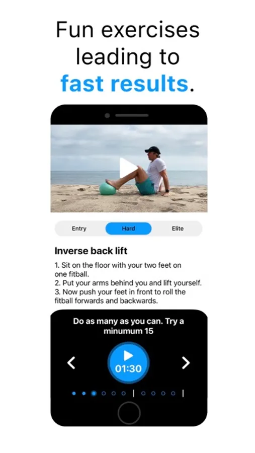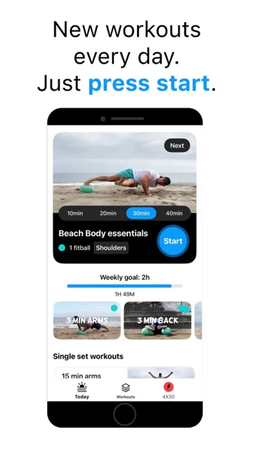 The app takes care of all the thinking and planning for you. Every day, you can experience a customized workout that is based on your fitness level and goal. Each workout consists of a combination of four exercises. The levels vary from easy to ultimate.