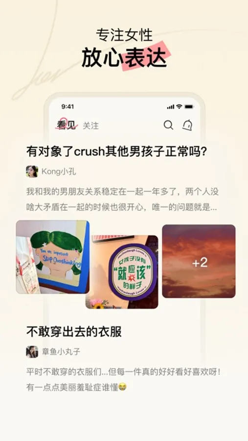 基于女性自我、情感、职场、精神消费等话题进行自我表达和宽容对话。