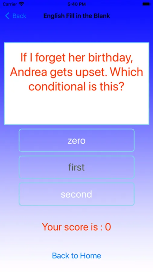 anglické podmienené príkazy ponúka množstvo cvičení na zlepšenie vášho zážitku z učenia. Môžete sledovať svoj pokrok a kontrolovať svoje odpovede, aby ste zlepšili pochopenie tohto konceptu.