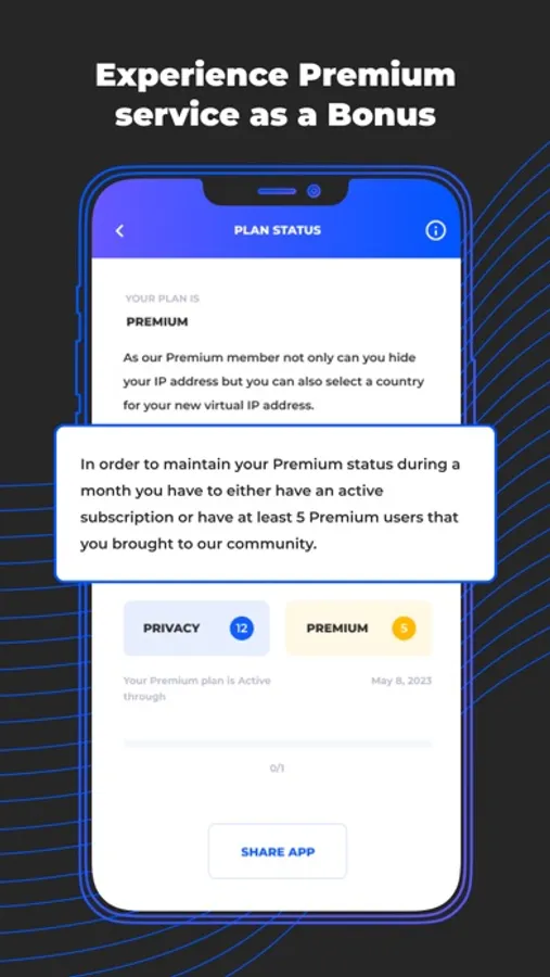 • FREE Premium Service. Not only did we organize all our servers together in a cloud, we think of all our users together as a community of privacy, safety, and security-oriented people. We strive to grow this community as fast as possible and will thank you for helping us out here. If you bring five or more users, you will get our FREE Premium Service for as long as those users maintain their Premium (Paid or FREE) service!