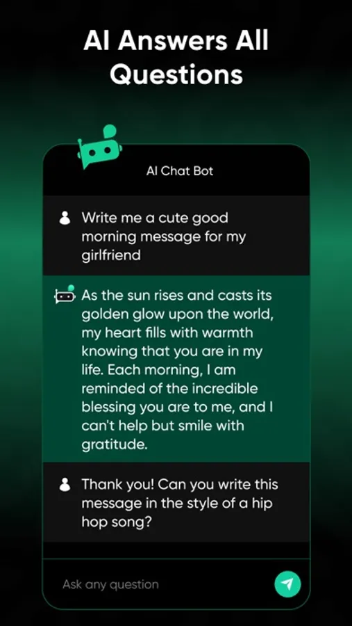 What's cool about this app is that it's been trained on a ton of information from books, articles, and websites. So it's basically a genius in understanding language and giving you accurate answers. And the more you use it, the smarter it gets!