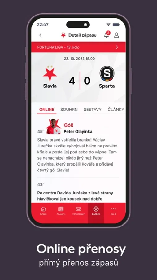 Aktuální novinky z klubu, permanentka po ruce, snadný nákup vstupenek, živé textové přenosy, odhlašování ze zápasů, Slavia Radio a mnoho dalšího.