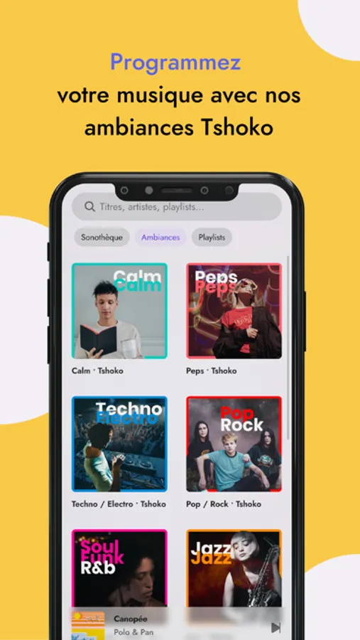 Grâce à myTshoko, pilotez la musique du bout des doigts et gérez l'ambiance musicale de manière simple et efficace.