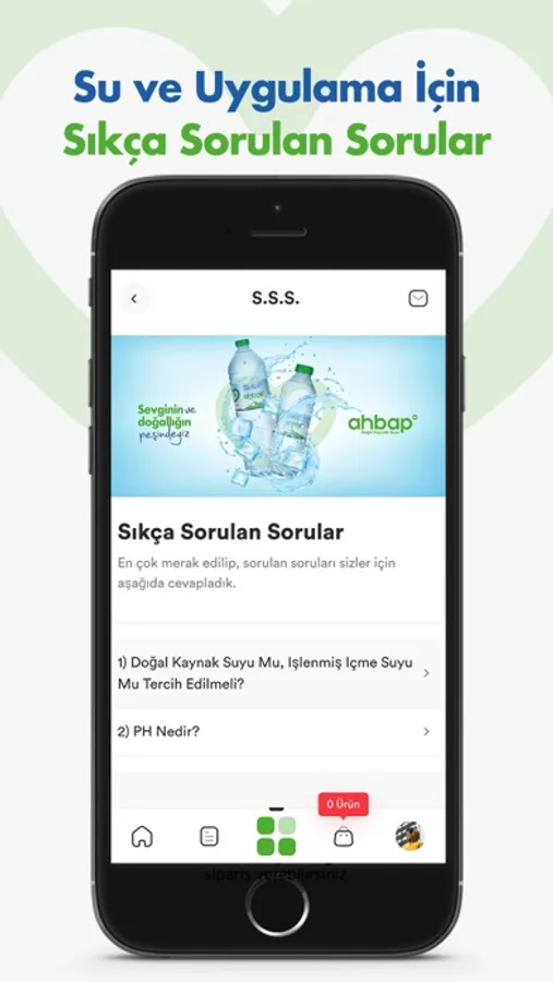 IOS Uygulamamız sayesinde sipariş kolaylığıya tüm AhbapSu ürünlerini görebilir, kredi kartınızla kolayca sipariş verebilirsiniz.