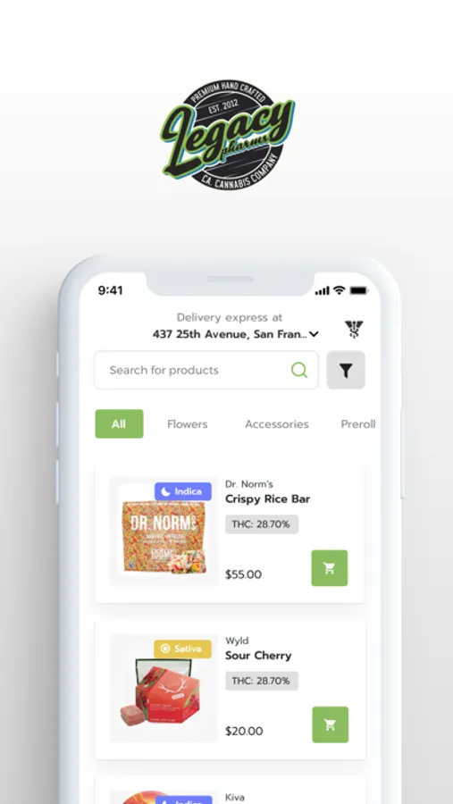 Legacy Pharms's mobile app you can sign-up, browse their menu of products, view your order history, and receive exclusive app announcements.