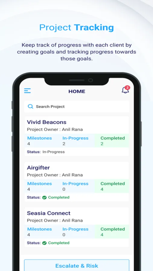 Our app is the perfect solution for professionals who need to manage their client relationships on the go. Feel more connected and secure with Prism, a one-stop shop for managing client requirements. It provides your clients with a platform to understand the project plan of action, track and monitor the progress & stay updated with overall project updates.