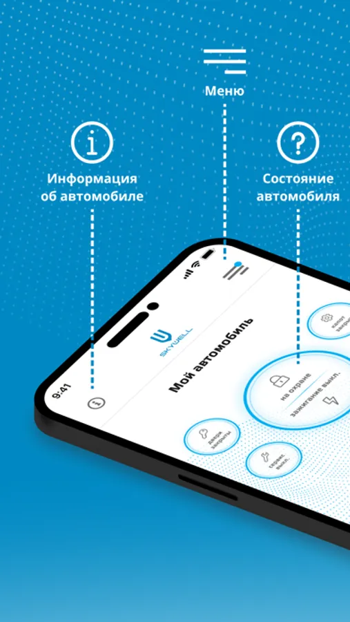 Управляйте вашим автомобилем и его охранным комплексом в режиме онлайн из любой точки мира с бесплатным мобильным приложением Skywell Connect.