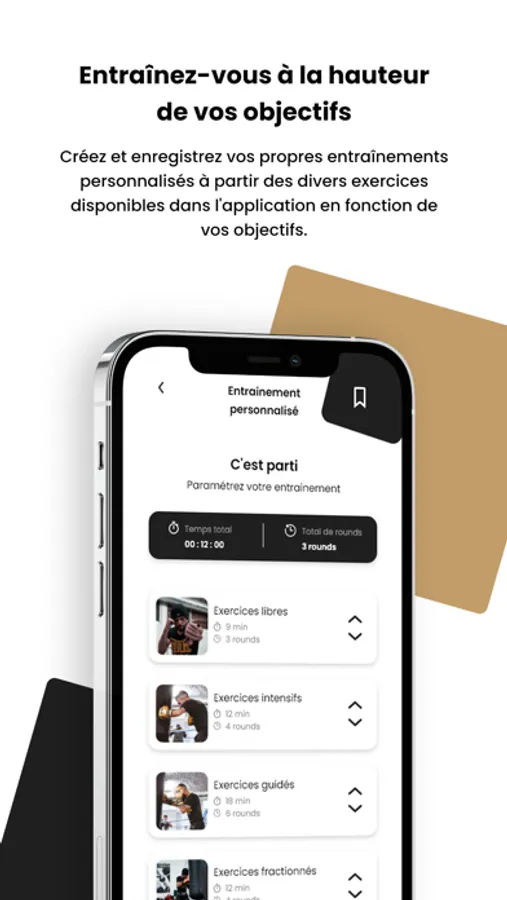 Personnalisés : créez et enregistrez vos propres entraînements personnalisés à partir des divers exercices disponibles dans l'application.