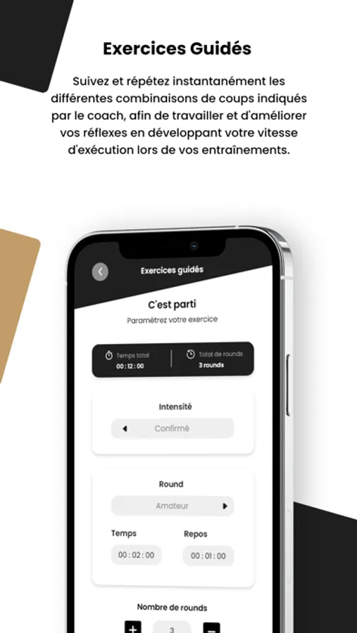 La version gratuite donne accès aux options classiques d'un timer : longueur de round (amateur, professionnel ou libre), nombre de round illimité. Vous pourrez également utiliser la fréquence (10/10) dans la partie fractionnée.