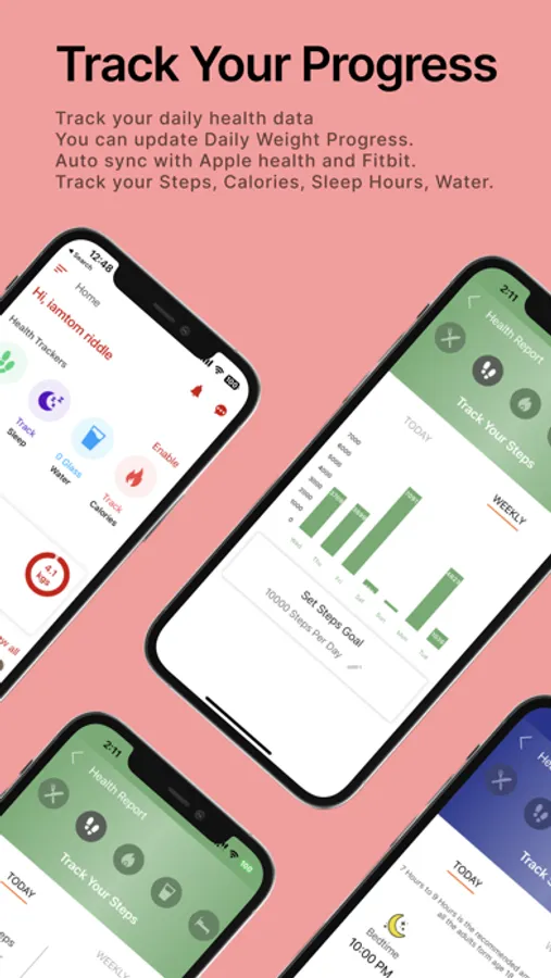 • Track your Steps, Calories, Sleep Hours , Water intake.
